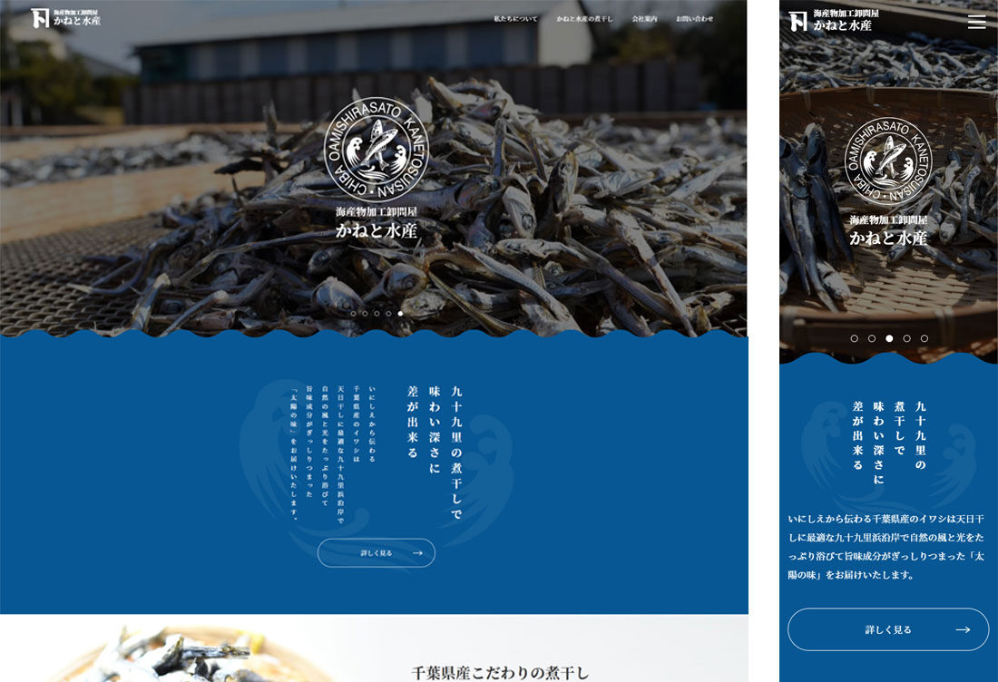九十九里産の煮干しを生産しているかねと水産様のホームページを作成いたしました。